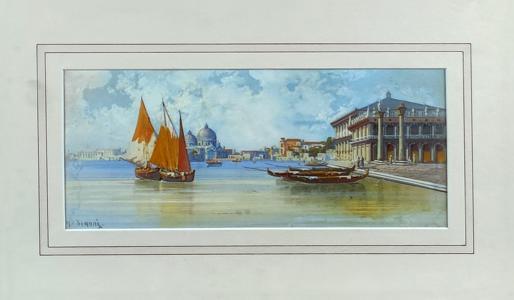 Scène orientaliste dans un port, aquarelle sur papier, signée O....
