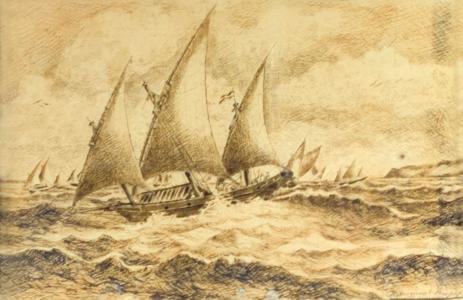 Voiliers, plume sur papier, signée, 18,5x28,5 cm
