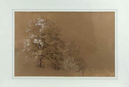 Etude d'arbres, craie blanche et crayon noir, signé, 28x43 cm
