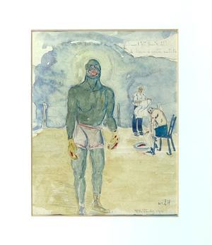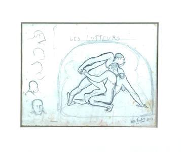 Les lutteurs, mine de plomb sur papier signée et datée 1908, 24x...