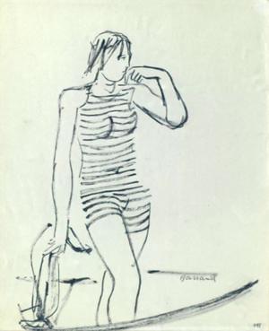 Jeune femme en maillot de bain, encre sur papier, 25x20 cm