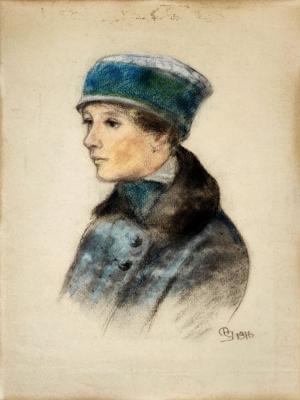 Portrait d'un jeune garçon, gouache sur papier, 34x28 cm
