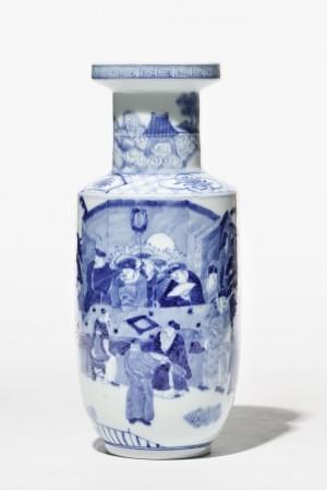 Porcelaine bleu blanc à décor de scènes animées, H 24 cm