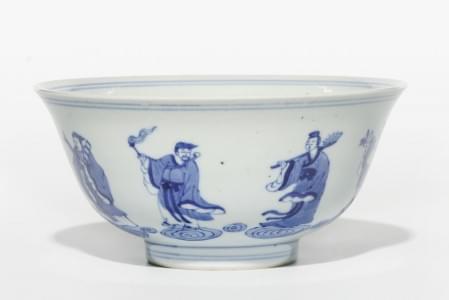Porcelaine bleu blanc à décor des huit immortels, D 16 cm