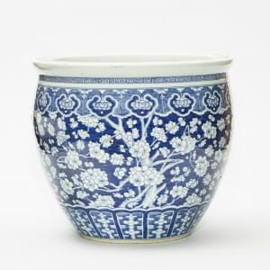 Porcelaine bleu blanc à décor de cerisiers en fleurs, H 35, D 40...