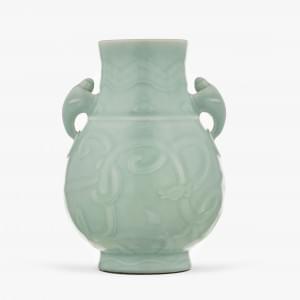 Porcelaine à engobe céladon le corps à décor en faible relief de...