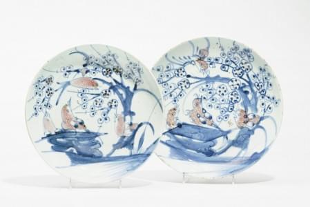 878. Paire d'assiettes, Japon, XIXe s, marque sous la base