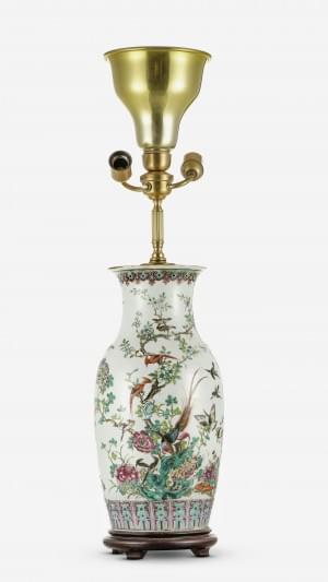 Porcelaine émaillée à décor d'oiseaux et de fleurs, H 35 cm.