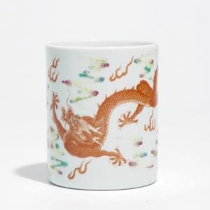 Porcelaine émaillée rouge de fer à décor de dragons, D 6 cm