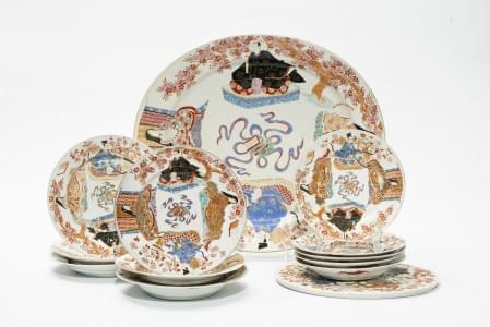 892. Grand plat ovale et 11 assiettes, Japon, XIXe s
