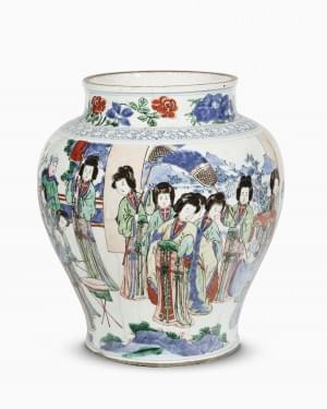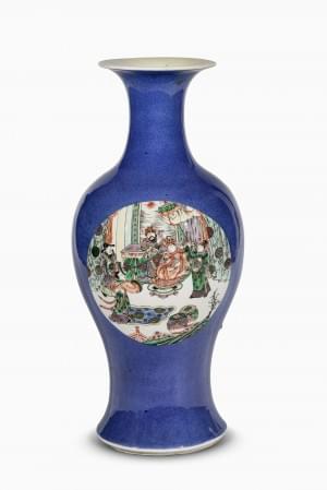 Porcelaine émaillée polychrome à décor de scènes animées, H 41 c...
