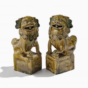 911. Paire de chiens de Fô sur piédestal, Chine, dynastie Qing (1644-...