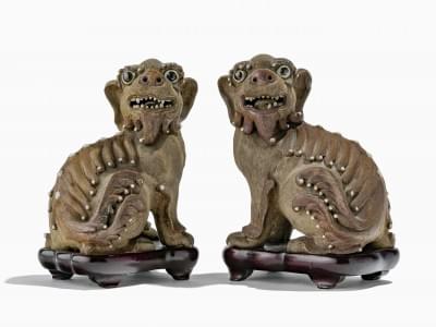 913. Paire de chiens de Fô mâle et femelle, Chine dynastie Qing, XIXe...