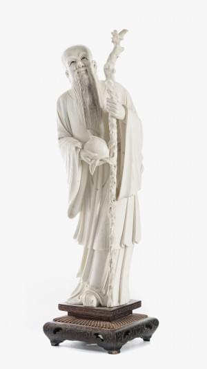 943. Statuette figurant un immortel avec la pêche de longévité, Chine...