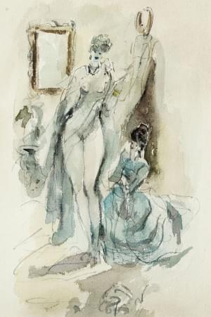 Chez la couturière, aquarelle, signée, 28x19 cm