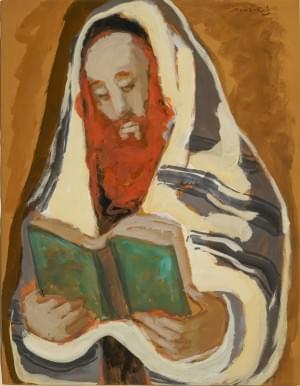 Rabbin, gouache sur papier, signée et datée 61, 22x32 cm