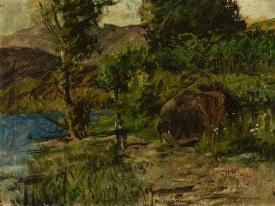 Le vacher, huile sur toile, signée et datée 1907, 71x106 cm