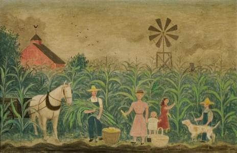 Corn pickers, huile sur toile, signée, 27x41,5 cm