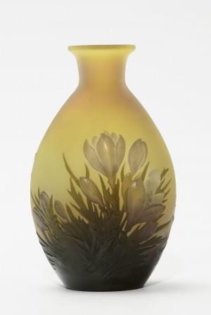 Verre soufflé pressé et dégagé à l'acide à décor de crocus verts...