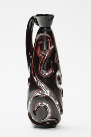 Verre multicouche sang de bœuf à décor taillé d'arabesques, H 23...