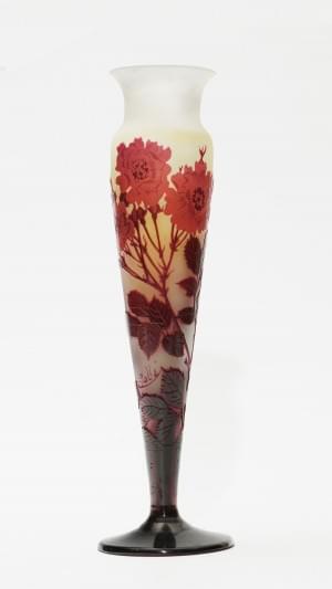 Verre multicouche dégagé à l'acide, à décor de roses rouges sur...