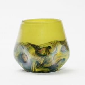 Verre à marbrures bleues sur fond jaune, H 12,5 cm