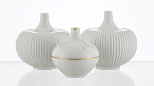 Porcelaine à motif annelé rehaussé de filets dorés, daté 1938, H...