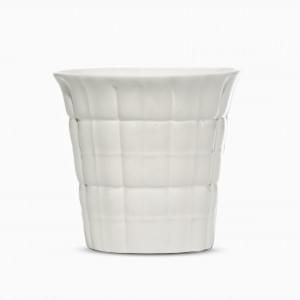 Cache-pot de forme ovale évasé, céramique émaillée blanc, à déco...