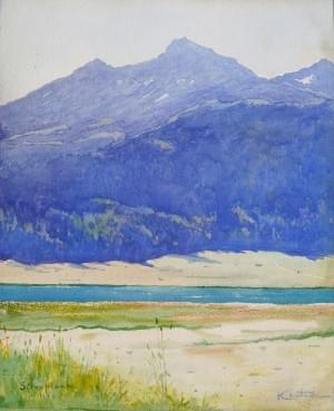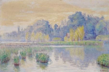 Paysage lacustre, huile sur toile, 46x55 cm