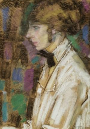 Femme de profil, pastel sur papier, signé, 50x36 cm