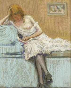 Femme à la lecture, pastel sur papier, signé, 36x29 cm