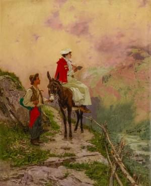 Sur un chemin de montagne, huile sur toile, signée, 60x49 cm