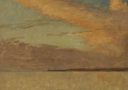 Coucher de soleil sur l'île Saint-Pierre, huile sur carton, 19,5...