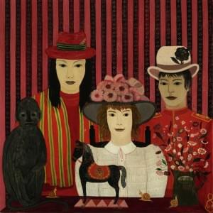 Portrait de famille avec singe, huile sur toile, signée, 100x100...