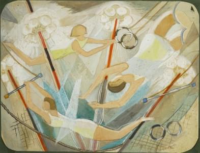Trapézistes, aquarelle et gouache sur papier, 45x60 cm