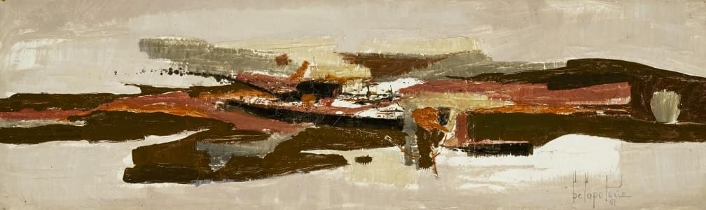 Abstraction, huile sur pavatex, signée et datée 1961, 25,5x81 cm
