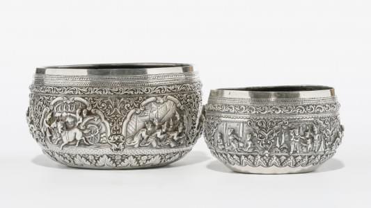 Inde, début XXe s, argent, D 14 et 10 cm, 800 g