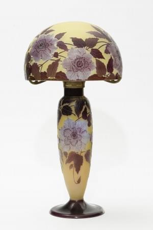 Verre multicouche dégagé à l'acide à décor de clématites bleues...
