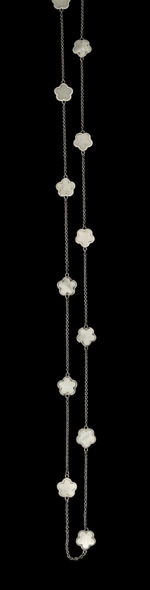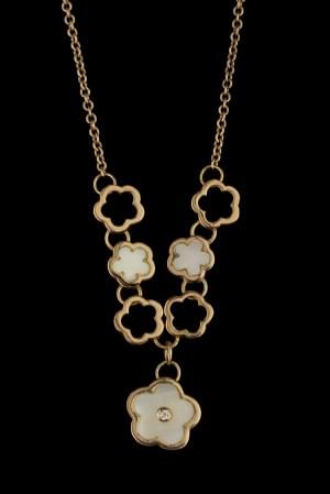 697. Collier à motif de fleurs en nacre ou ajourées, une sertie d'un...
