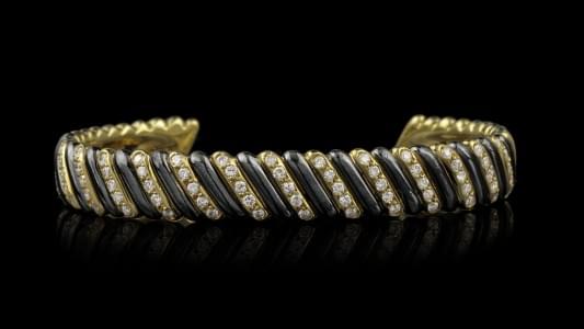 700. Bracelet jonc ouvert serti de diamants (env. 1 ct) et hématites
