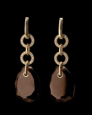 705. Pendants d'oreilles sertis de diamants et retenant une goutte de...