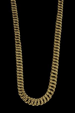 701. Sautoir à maille fantaisie ronde terminé par un fermoir à motif...
