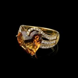 711. Bague sertie d'une citrine taille cœur (env. 7,5 ct) épaulée de...