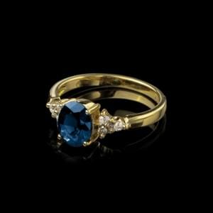 715. Bague sertie d'un saphir taille ovale (env. 1 ct) entouré de dia...