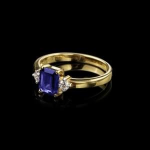 714. Bague sertie d'un saphir taille rectangle (env. 0,9 ct) épaulé d...