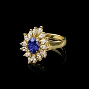 759. Bague marguerite sertie d'un saphir taille ovale (env. 2,7 ct) e...