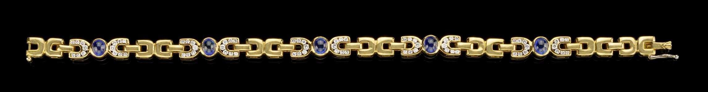 716. Bracelet à maille fantaisie serti de saphirs en cabochon (env. 2...
