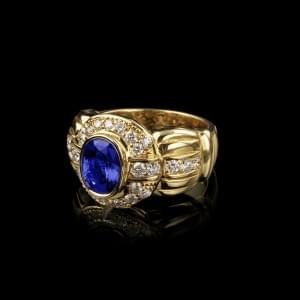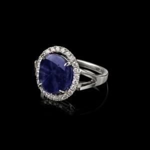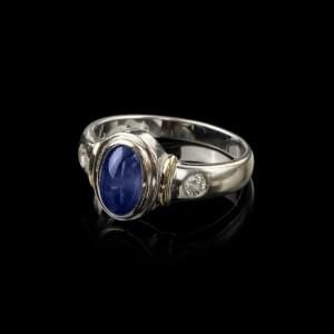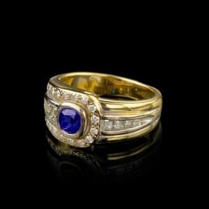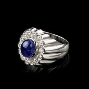 717. Bague sertie d'un saphir cabochon entouré de diamants