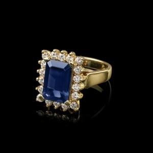 721. Bague sertie d'un saphir taille rectangle (env. 3,5 ct) entouré...