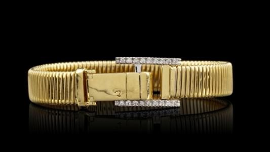 722. Bracelet à maille tubogaz terminé par un fermoir serti de diaman...